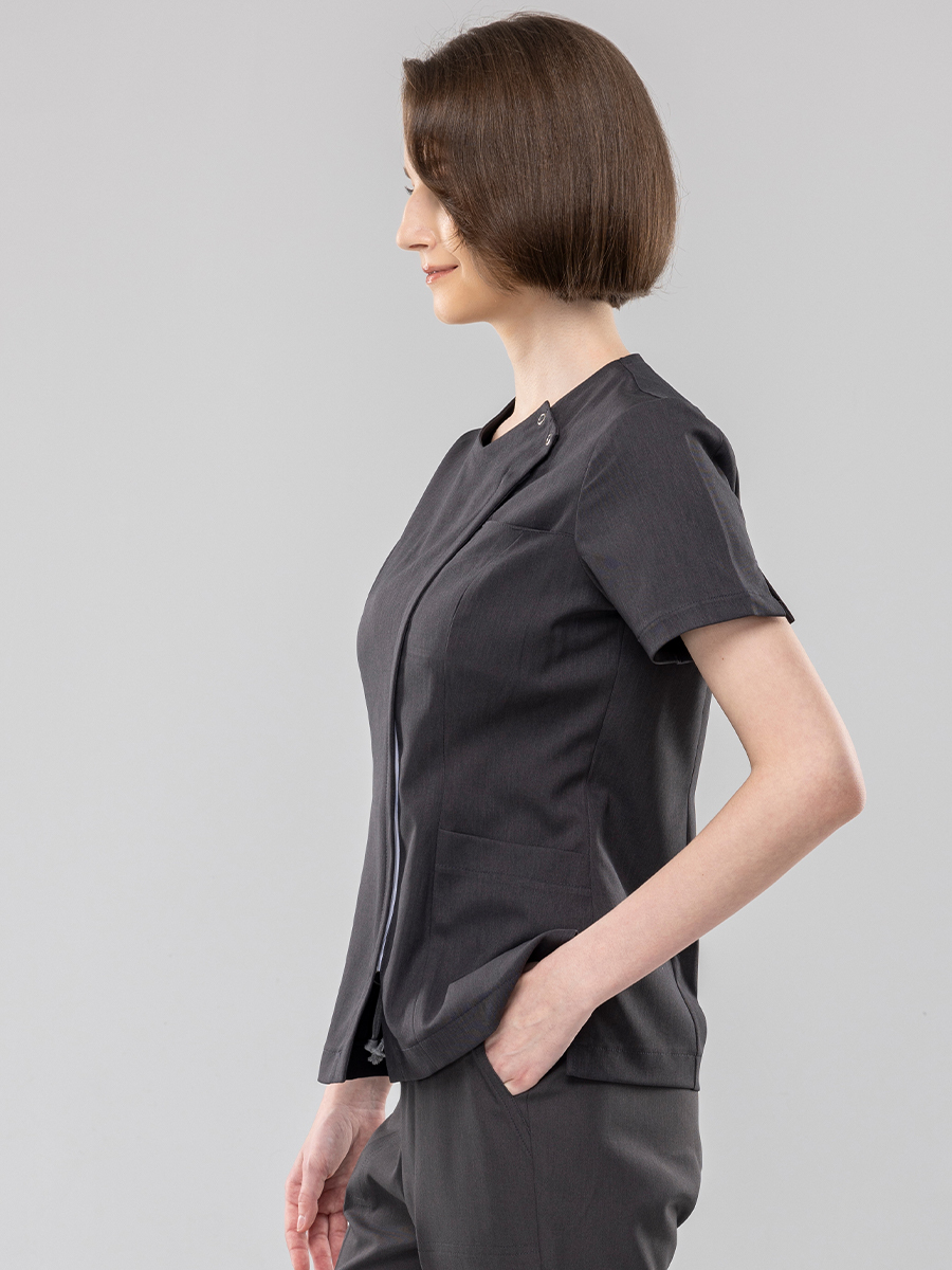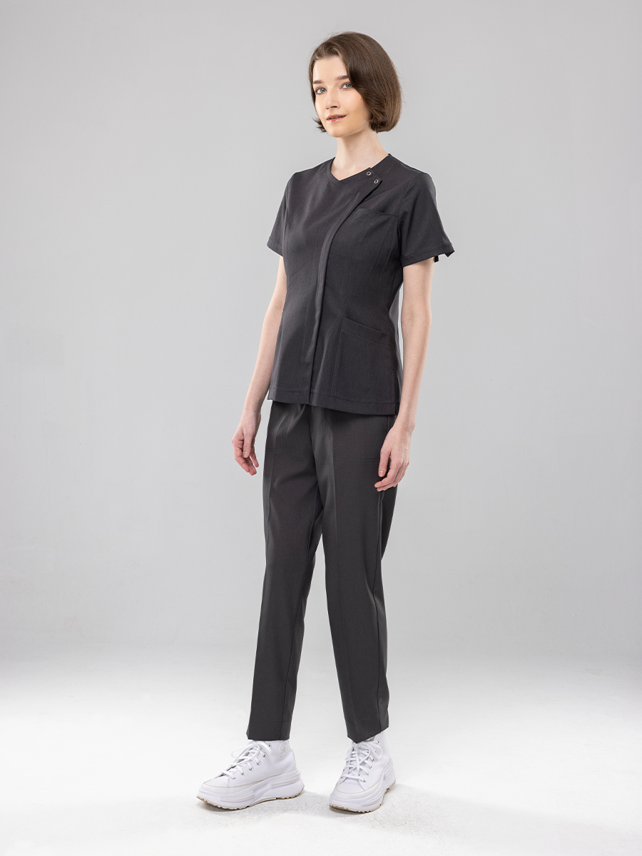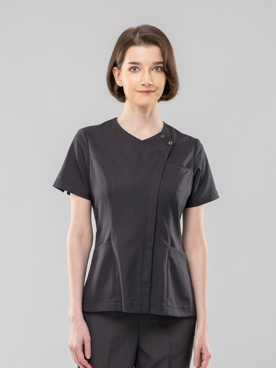 .桃形領、正面雙口袋加一字隱藏胸袋