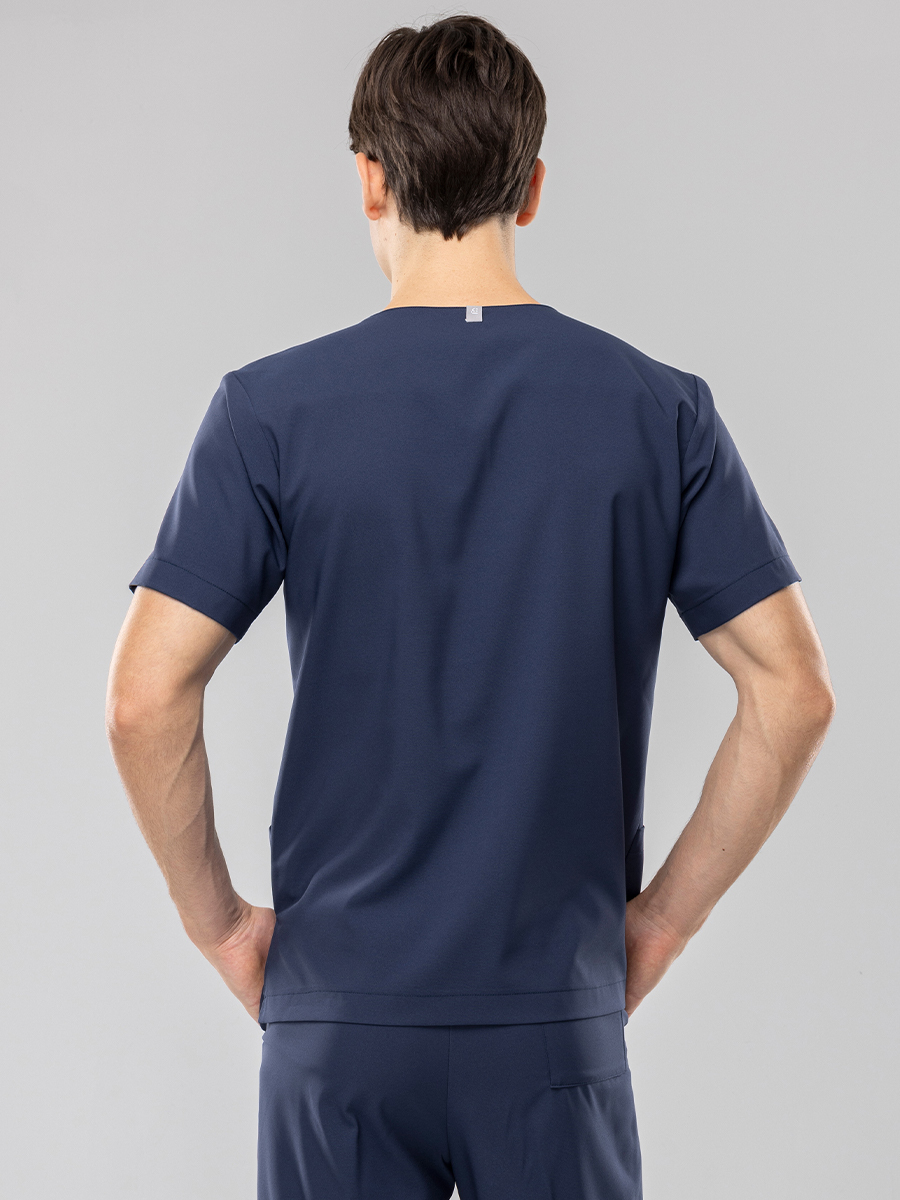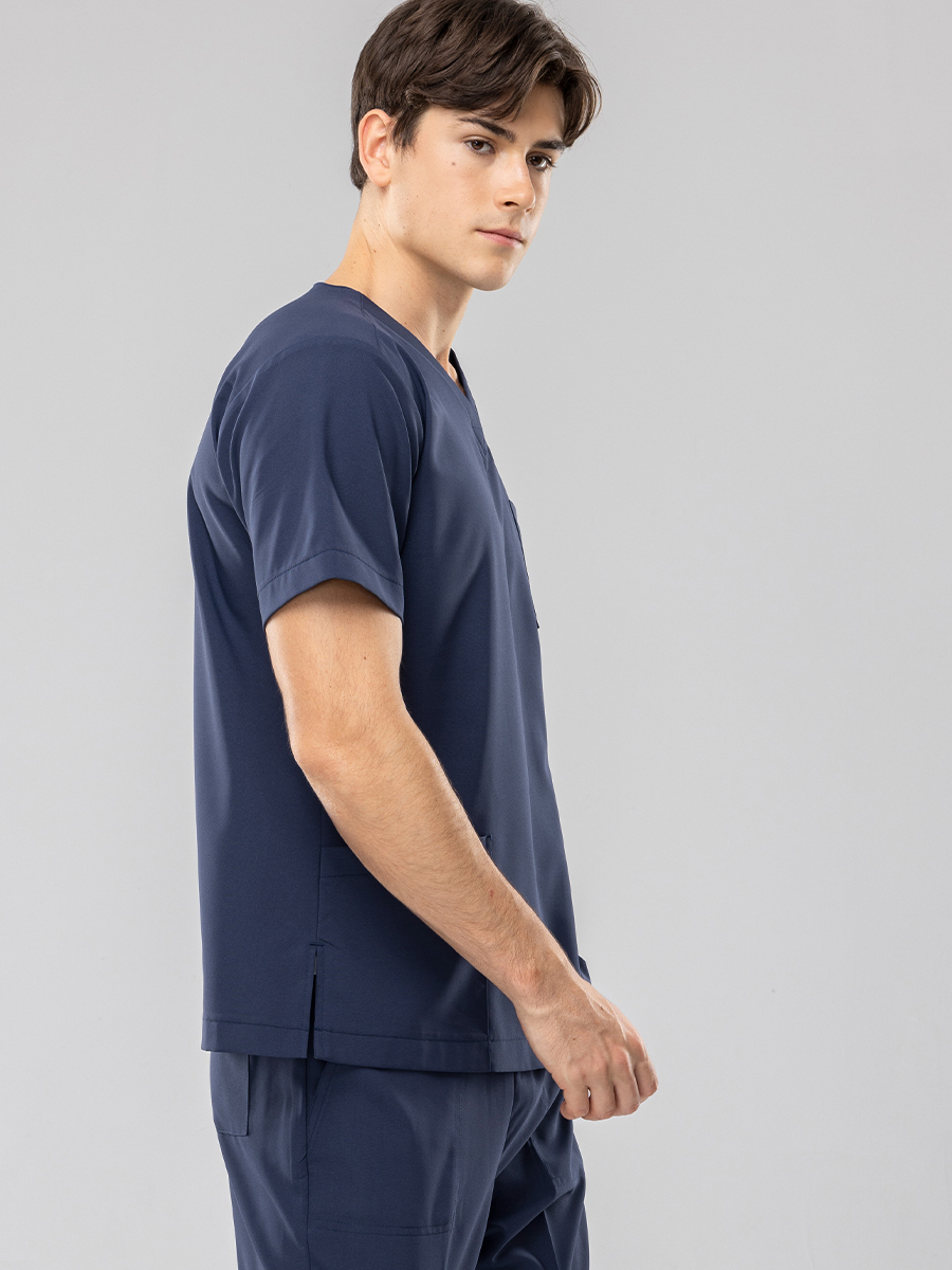 .V型領口、正面三口袋(左右+左胸各1)