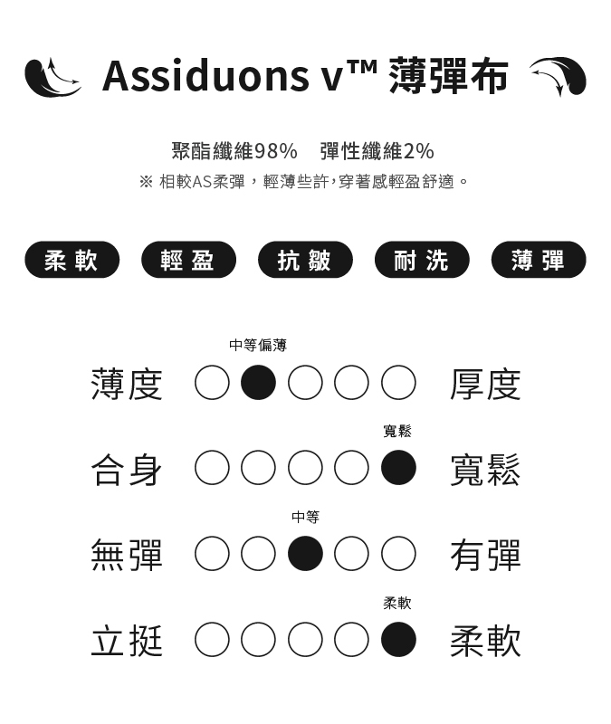 .柔軟輕盈降低穿著負擔、抗皺耐洗的便利特性