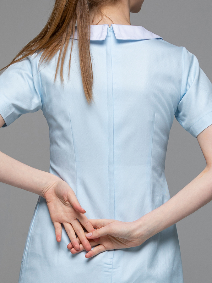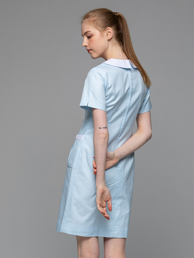 .後中拉鍊穿脫、正面裝飾釦。後拉鍊開至腰臀間