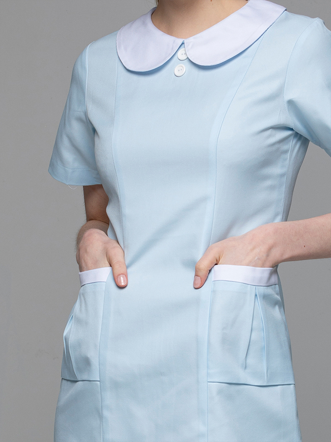 .經典小圓披領、單顆裝飾釦、正面雙口袋