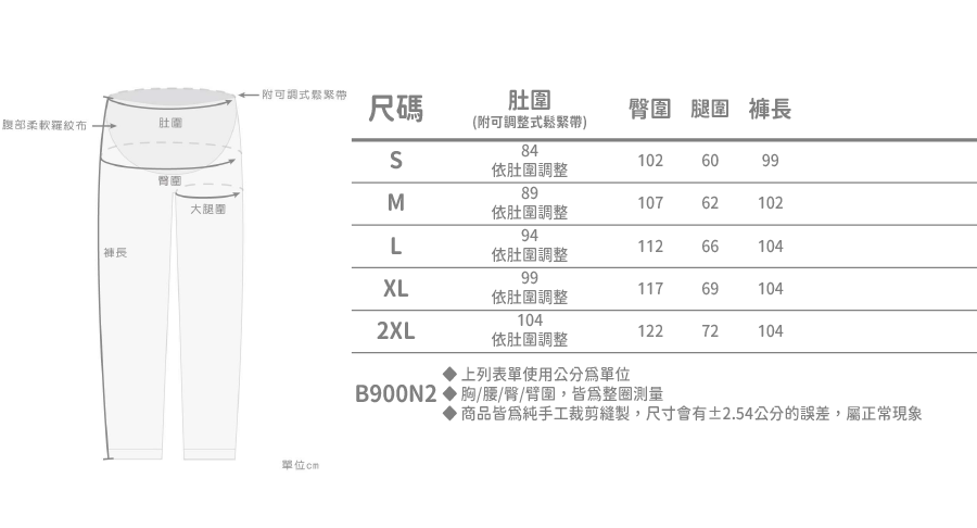 .長褲 : 腹部高彈性羅紋布,腰圍可調節式鬆緊帶