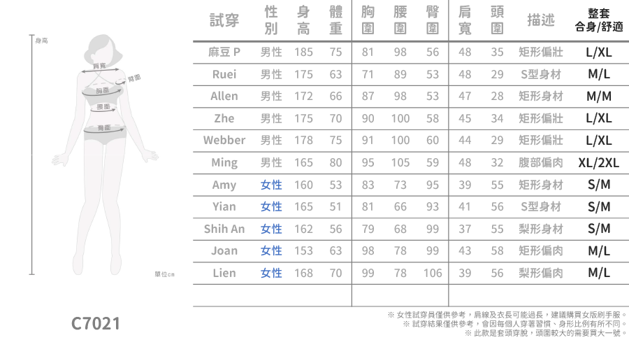 .上衣:套頭穿脫,建議尺碼寬鬆