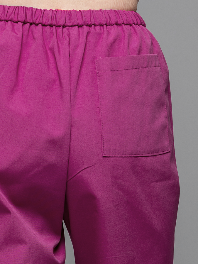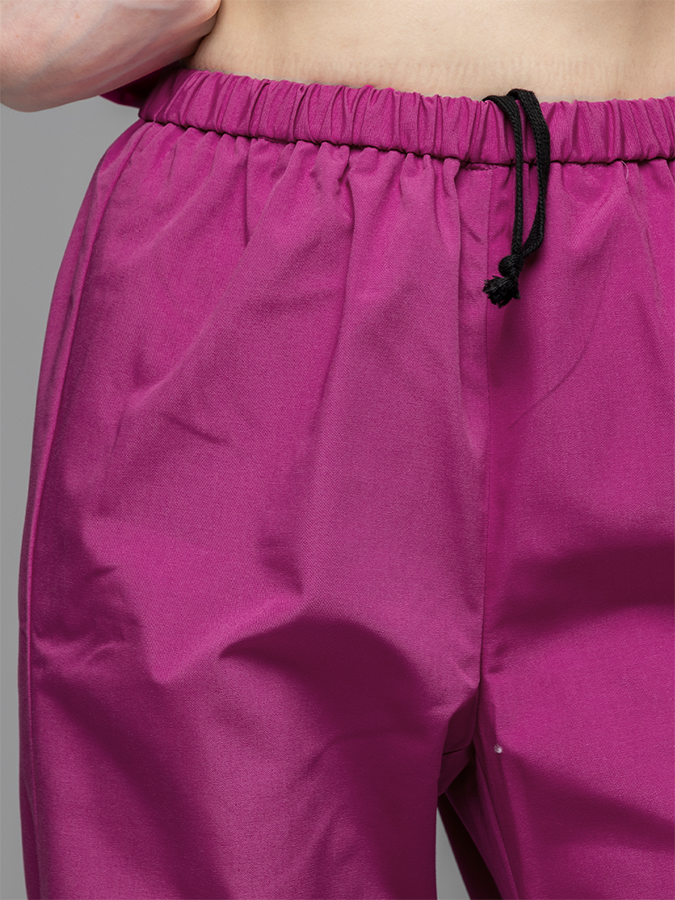 .整圈鬆緊帶,正面內側抽繩。後單一貼袋