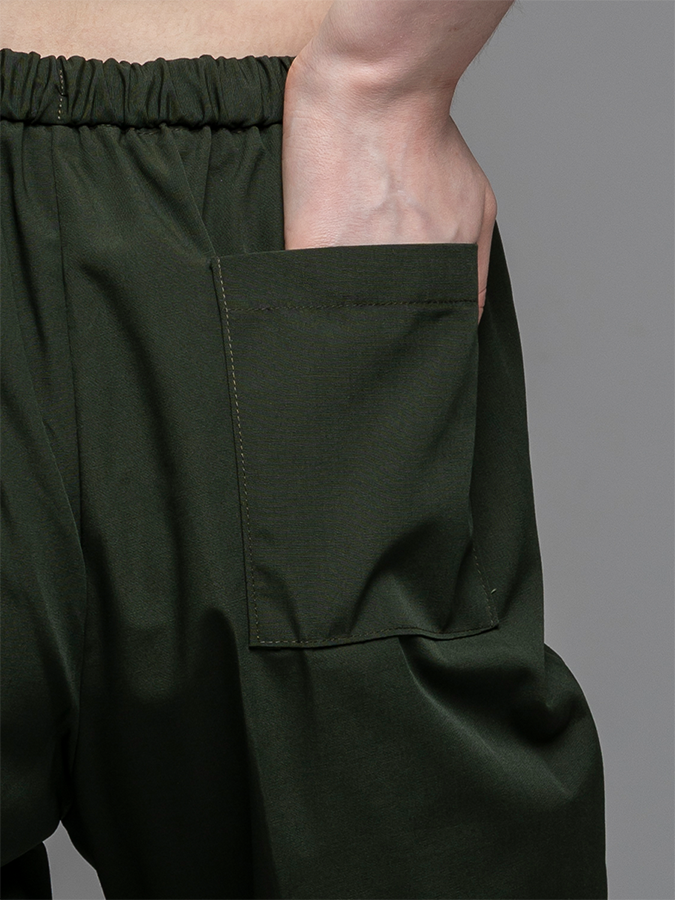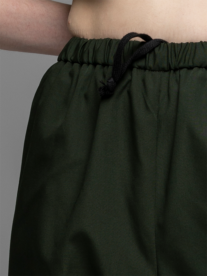 .整圈鬆緊帶,正面內側抽繩。後單一貼袋