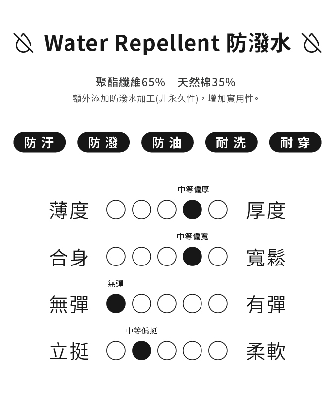 .防潑水加工,具防汙、防油、防潑水效果