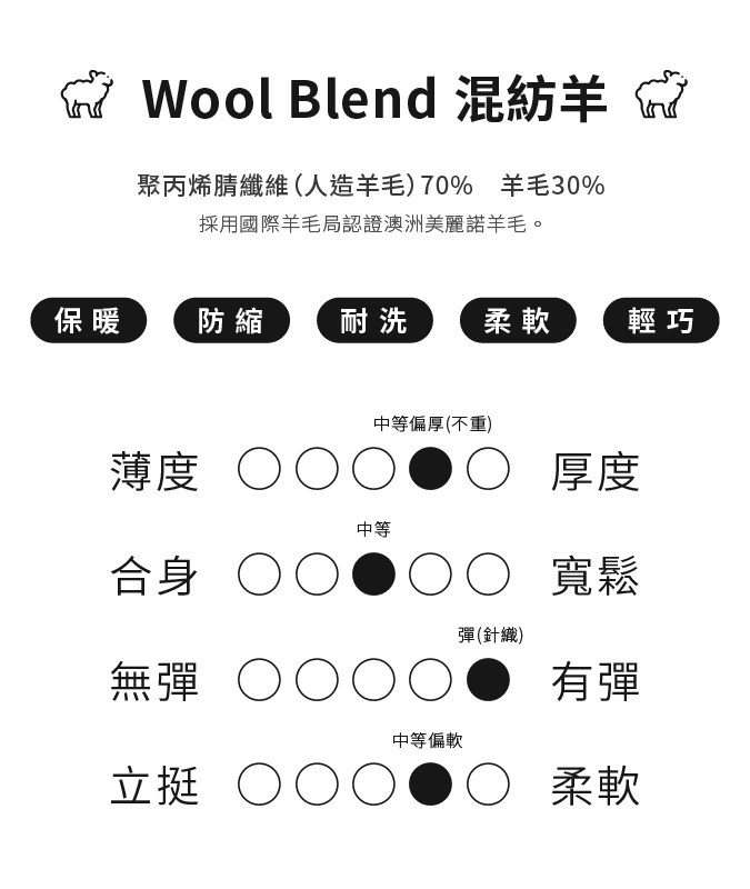 .羊毛經特殊處理後,保暖性佳的優點外,防縮及機器洗滌