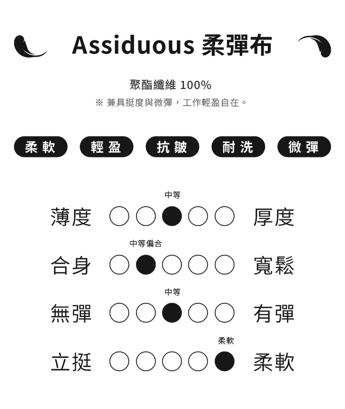 .柔軟輕盈降低穿著負擔、抗皺耐洗的便利特性