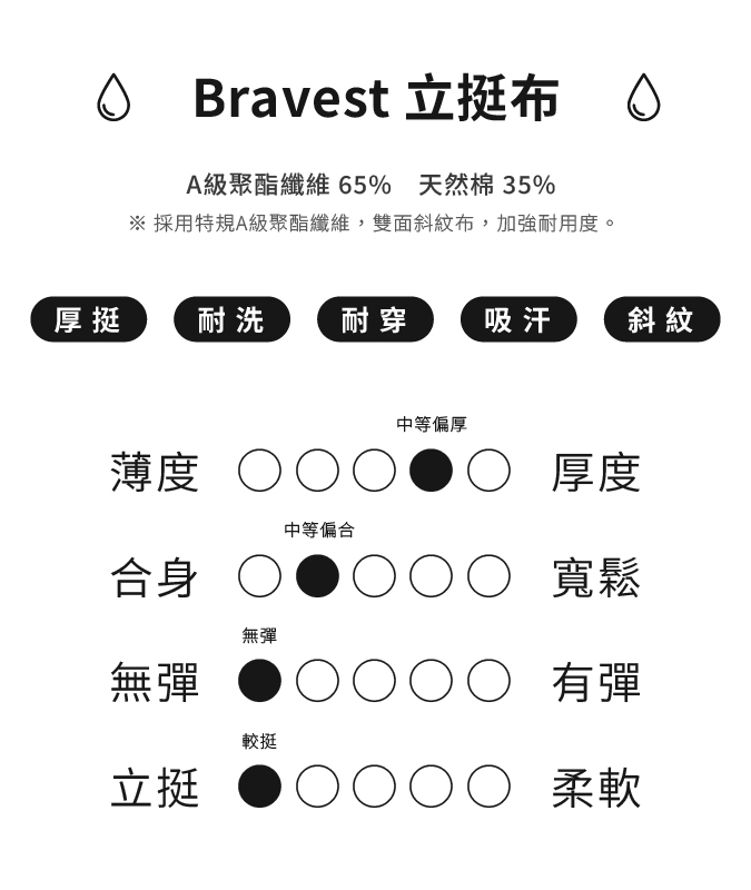 .採用Bravest™ 立挺布 (T/C斜紋含棉布)