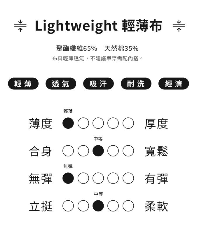.採用Lightweight 輕薄布 (T/C平織含棉)